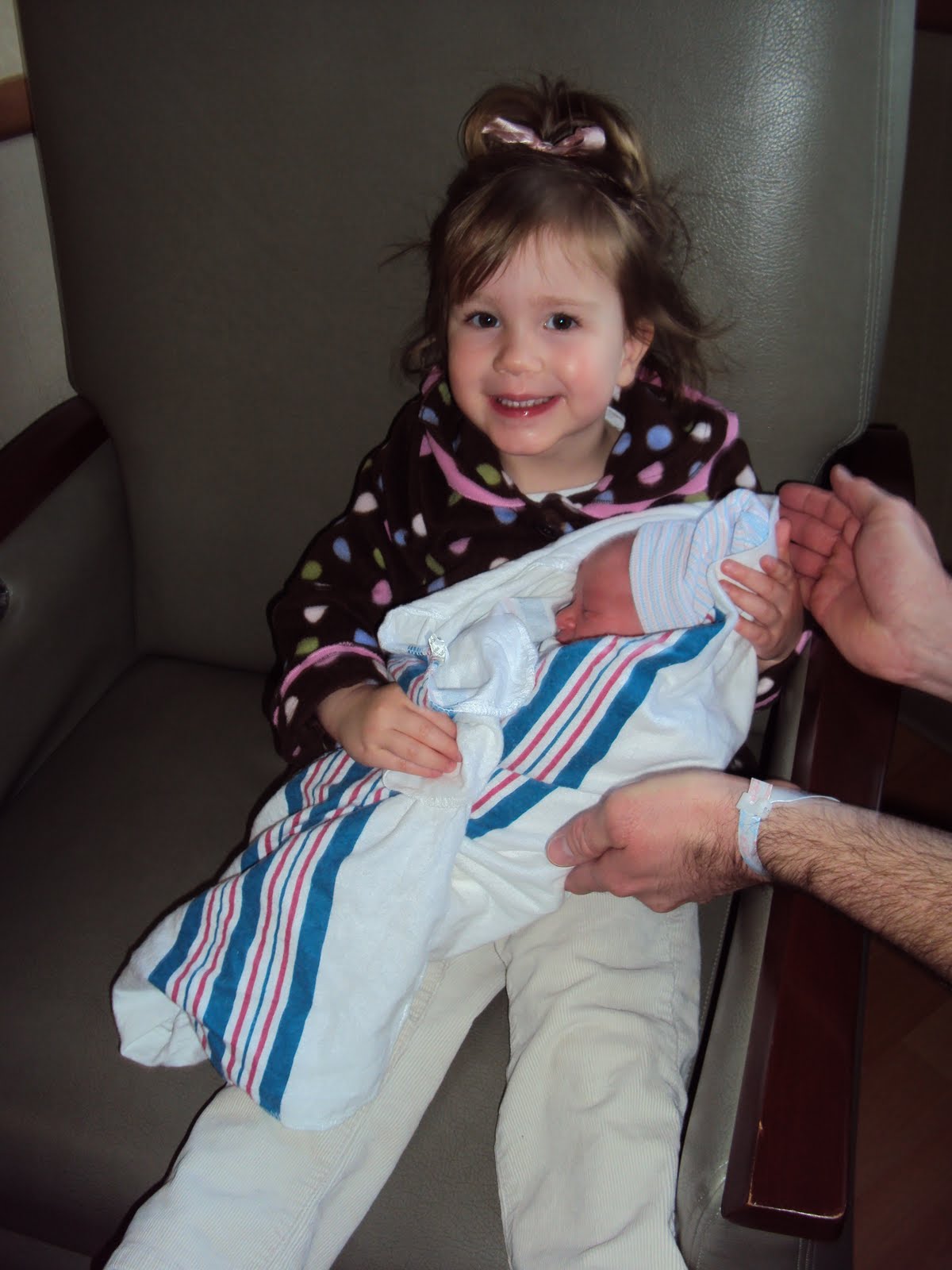 Abby LOVES her new little sister. She calls her baby! Whenever someone else held Abby she would run around saying "I love baby" haha meaning I want the baby.