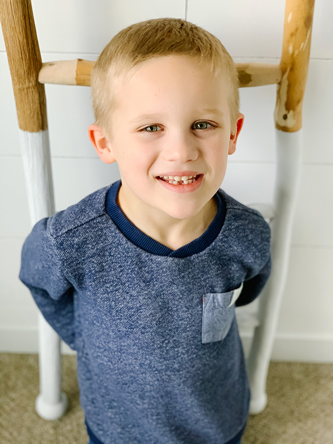 At the end of March and after nearly a month of wiggling, Liam lost his first tooth! If you zoom in you can see the adult tooth almost fully grown in behind his missing one. He took his time wiggling that little tooth back and forth until he finally worked up the courage to let me pull it. It felt like a big milestone in his young life as well as my parenting journey so far and turned out to be a bit more traumatic than him and I both bargained for. A few tries and a lot of tears later (including some from Lyla haha), we finally got that hummer out. How grown up and cute does he look with a missing tooth in his smile?!