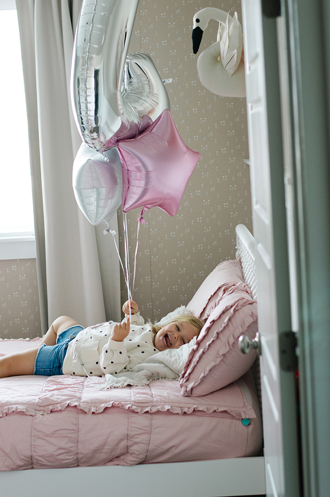 We started her the day with our birthday tradition of a stack of old fashioned donuts and a sparkler candle. I loved watching her reaction shift from shy to beaming over being the center of attention as we all sang "Happy Birthday" to her! I truly think it was one of her favorite parts about her day.
